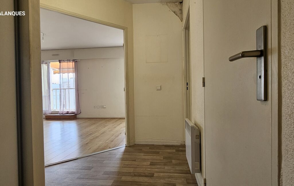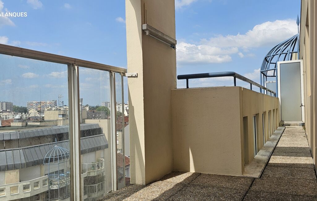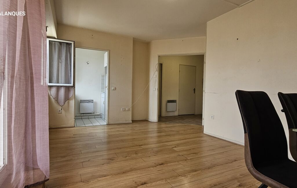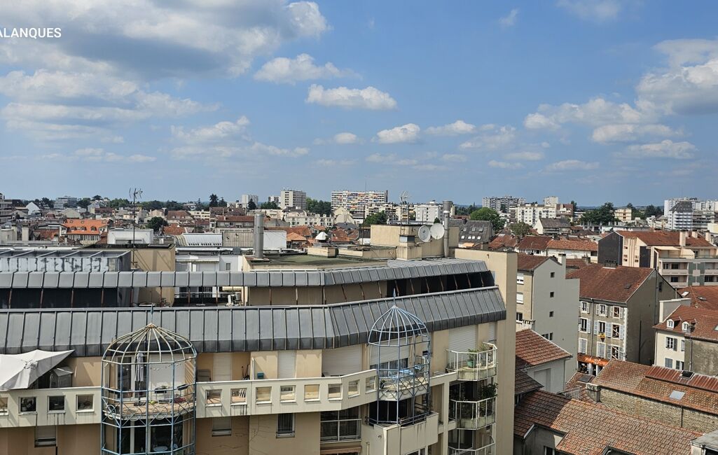 un grand balcon filant qui prolonge le séjour, la cuisine et la chambre avec placard , une lumière douce le matin, et tout le centre-ville accessible à pied.
