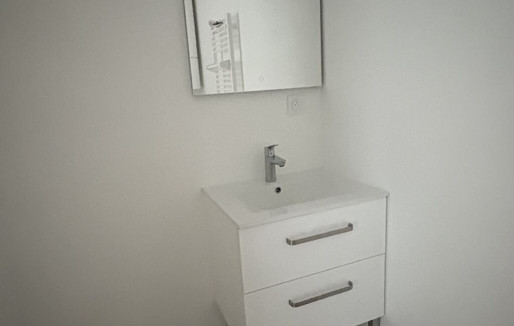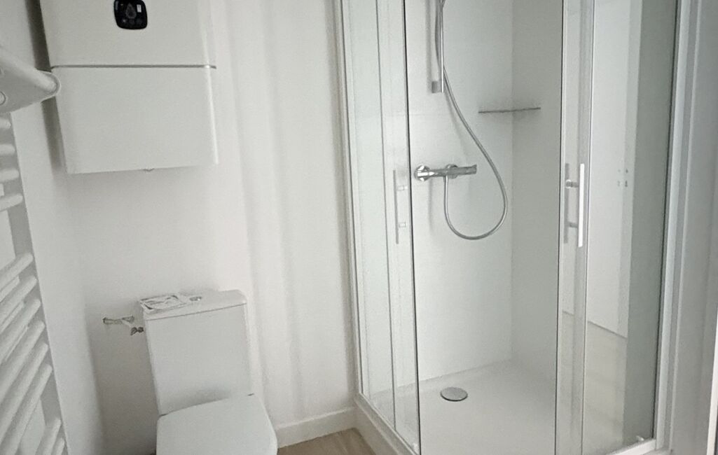 •Une salle d’eau contemporaine entièrement rénovée avec douche, WC et sèche-serviettes