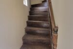 La première maison se compose d'un séjour avec cuisine à l'arrière, et d'un jardinet avec abri. Le premier étage comporte un couloir donnant sur une chambre, d'une salle d'eau et WC à compléter.