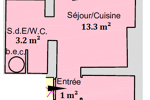 iad France - Stéphane Grandrie vous propose: Appartement de type F2 de 25 m² composé d'une entrée ouvrant sur une pièce de vie de 13 m² avec coin cuisine, d'un bureau de 7.6 m² pouvant faire usage de chambre, d'une salle d'eau avec toilettes.