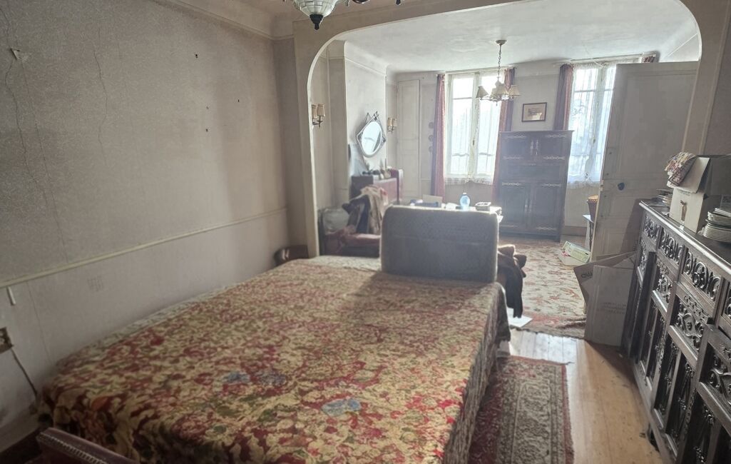 iad France - Vincent Dubois vous propose: Maison de bourg à étage de 115m2 composée au rez de chaussée d'une entrée qui dessert un bureau, une chambre, un salon salle à manger, une cuisine, une cave et une salle de bain avec WC. À l'étage, un palier qui dessert un grenier aménageable et deux chambres. Le tout sur un grand terrain clos et arboré de 2250m2 avec une cave, un garage, une remise, un puits alimente la maison, un autre le jardin et plusieurs dépendances. Pas de système de chauffage, simple vitrage et tout à l'égout. Le prix est négociable et possibilité d'être vendu avec des meubles de bonne facture.