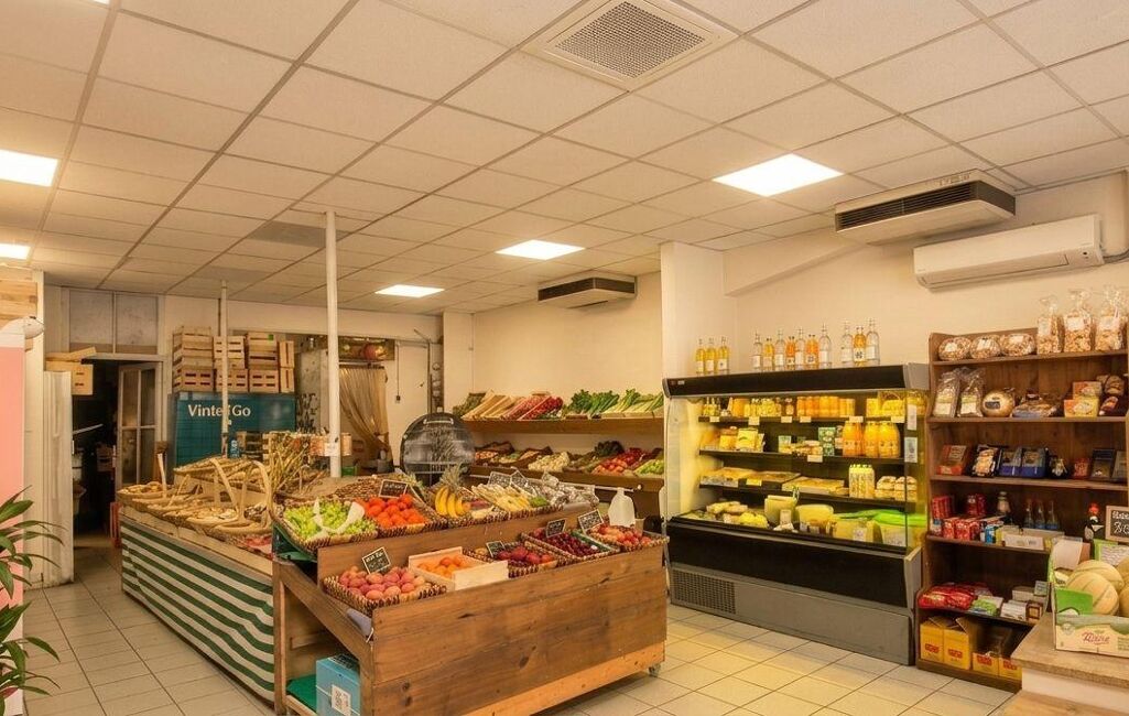 Le commerce développe une surface de 80 m² environ, comprenant un espace de vente organisé autour de produits frais et d’épicerie, une arrière-boutique à usage de réserve ainsi qu’une chambre froide.
