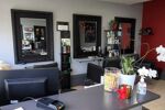 Le salon est lumineux, pratique et fonctionnel, avec une ambiance chaleureuse et professionnelle.