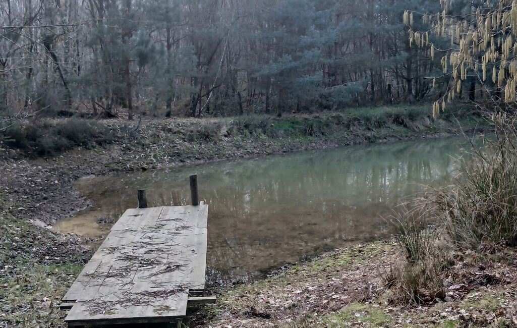 Ce terrain de loisirs de 3200 m² est entièrement clos avec une mare.