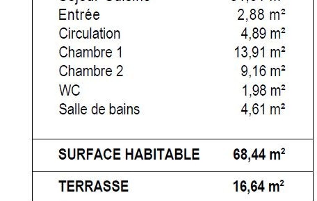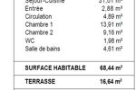 Surface habitable totale : 68,44 m² environ