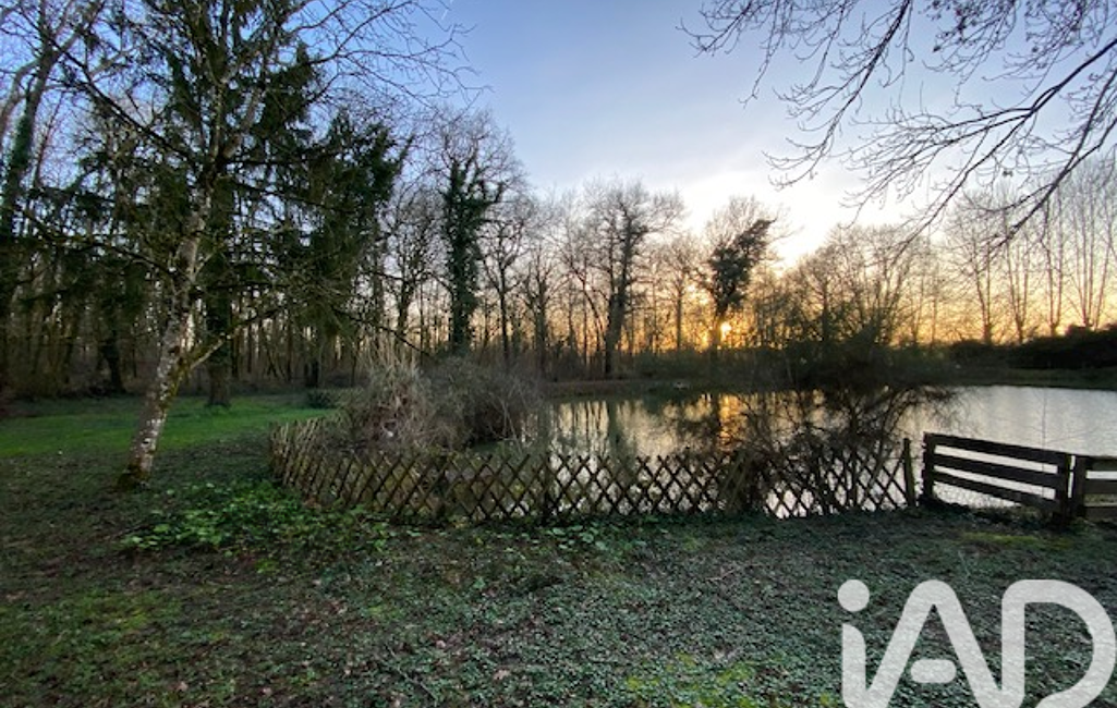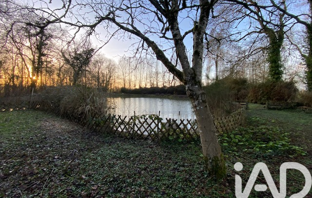 1/3 du terrain est un étang poissonneux clos avec pêcherie, ruisseau attenant, bâtiment fermé en dur et préau , 2 noyers, un poirier et autre arbres ornementaux