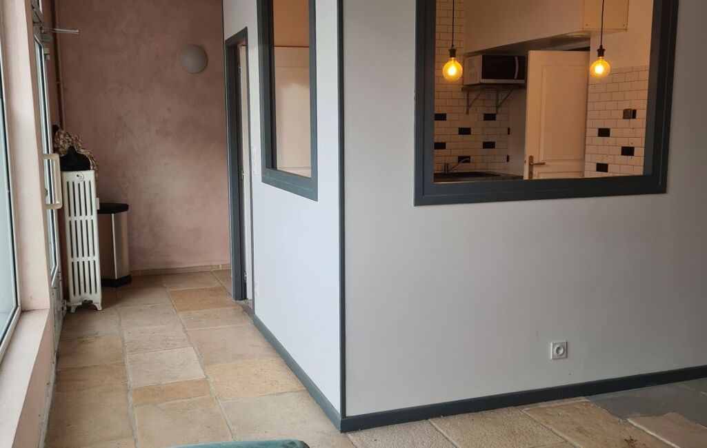 Ce bien se compose d'une entrée avec rangement, d'une cuisine semi ouverte sur une grande salle de réception.