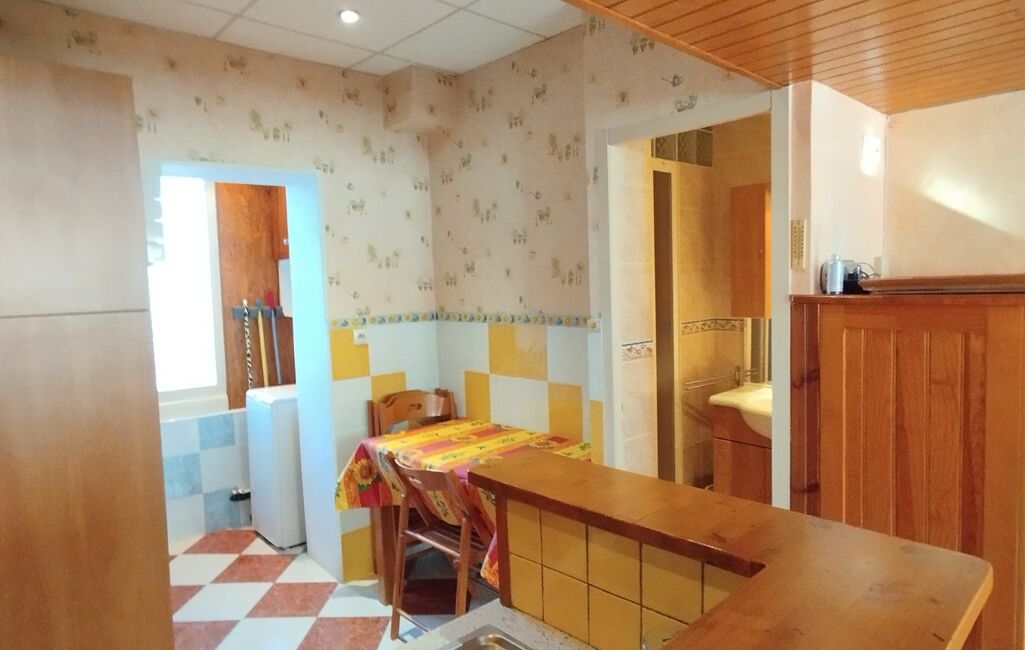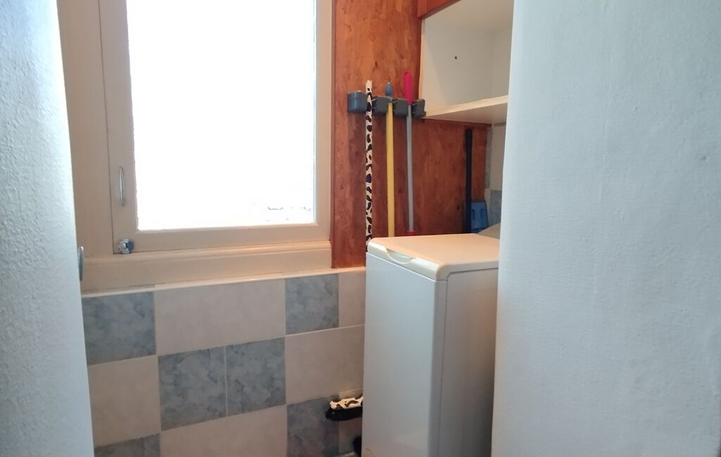 Il possède une belle pièce de vie lumineuse grâce aux 3 fenêtres, une cuisine aménagée, une salle d'eau, un WC séparé et un petit renfoncement caché pour la machine à laver.