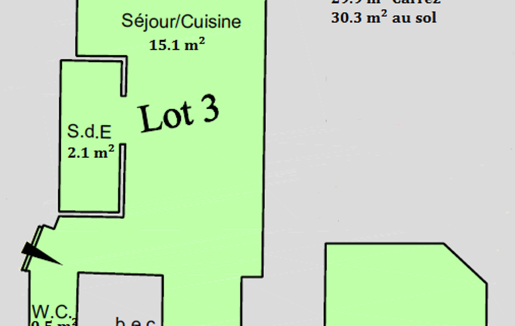 iad France - Stéphane Grandrie vous propose: Appartement de type F2 de 30 m² composé d'une pièce de vie de 15 m² avec cuisine aménagée et équipée, d'un dégagement, d'un bureau 'aveugle' pouvant avoir usage de chambre, d'une salle d'eau et de toilettes séparées.