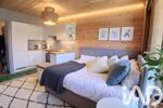 Le studio se compose d'une pièce de vie lumineuse et fonctionnelle, offrant un espace de vie principal ouvert comprenant la cuisine et le séjour. Vous y trouverez également une salle d'eau avec douche et WC, ainsi qu'un coin buanderie communes bien pratique. L'appartement bénéficie d'une exposition idéale, avec une orientation Sud et Est qui garantit une belle luminosité tout au long de la journée, ainsi qu'une place de parking privative.