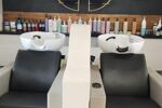 - Une pièce principale lumineuse, aménagée et équipée pour l’activité de coiffure: 2 postes de lavage et 4 postes de coupe + un laboratoire fonctionnel