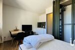 L'appartement se compose d'une entrée avec un espace de rangement, d'une salle d'eau avec WC, et d'un espace salon/cuisine avec une jolie vue dégagée.