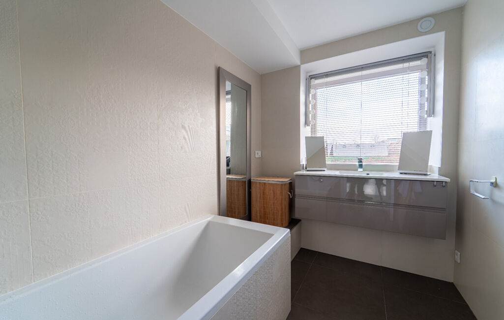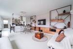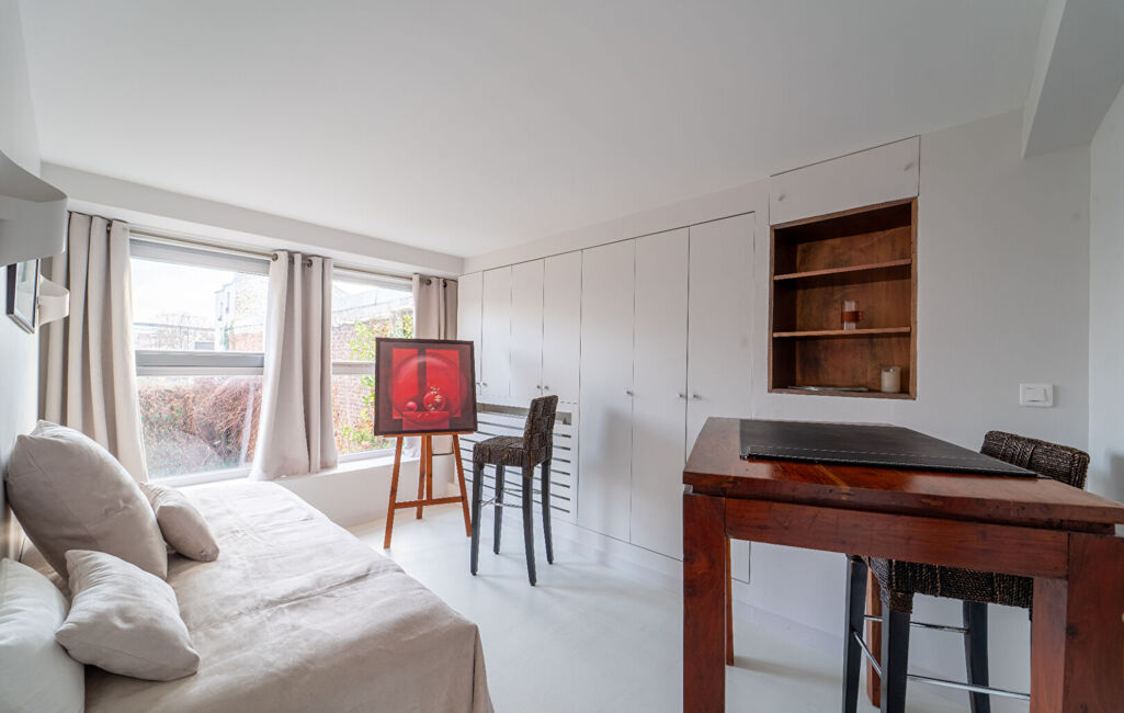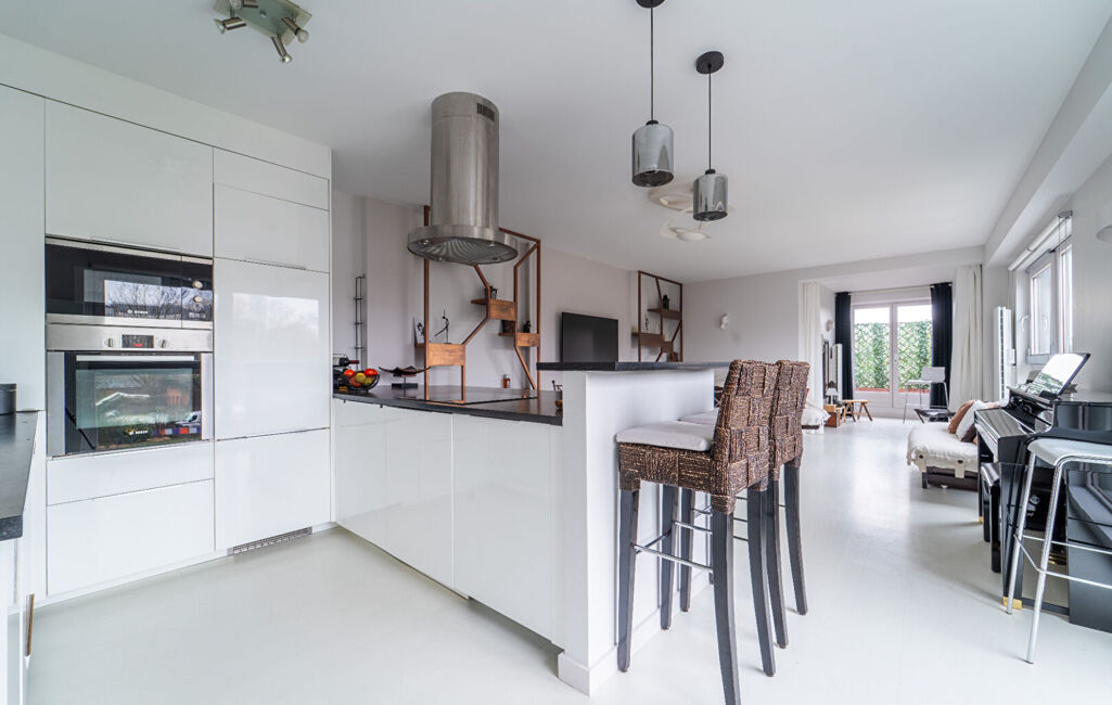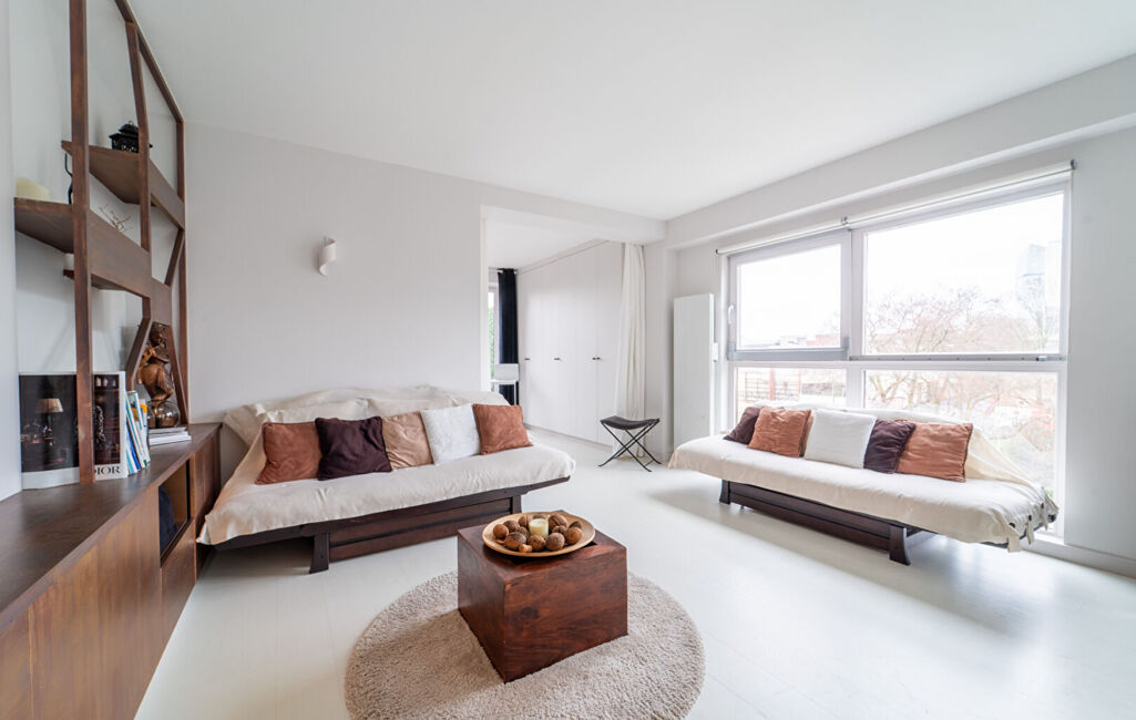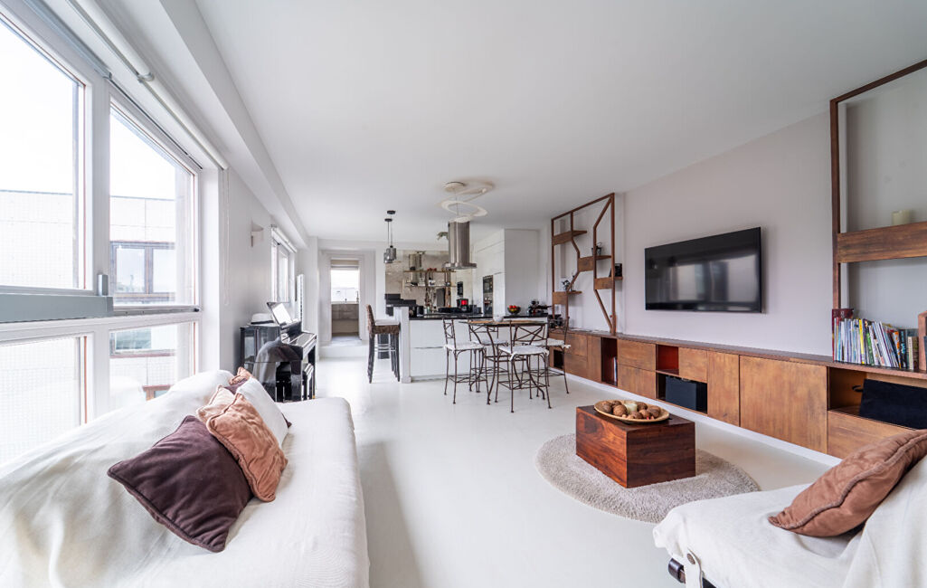 Les finitions soignées, notamment le parquet et les matériaux sobres et actuels, confèrent à l'appartement une atmosphère harmonieuse et raffinée.