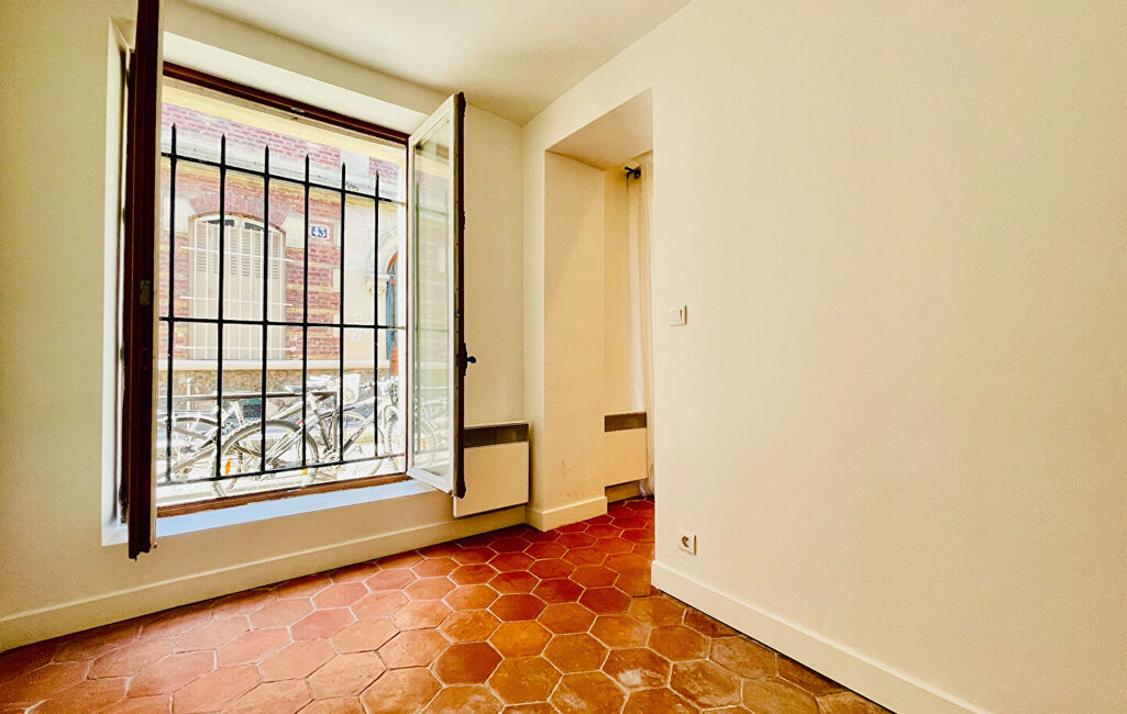 En plein coeur de Montmartre, situé entre la rue Lepic et la rue des Abbesses, ce deux pièces de 16,56 m2 en rez-de-chaussée donne sur une rue piétonne très calme.