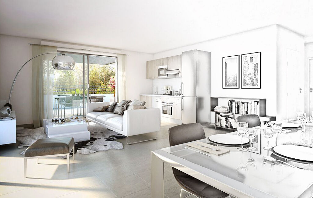 Appartement 2 pièces de 46 m² avec terrasse double exposition de 28 m² au 2éme étage d’une nouvelle résidence en centre ville.