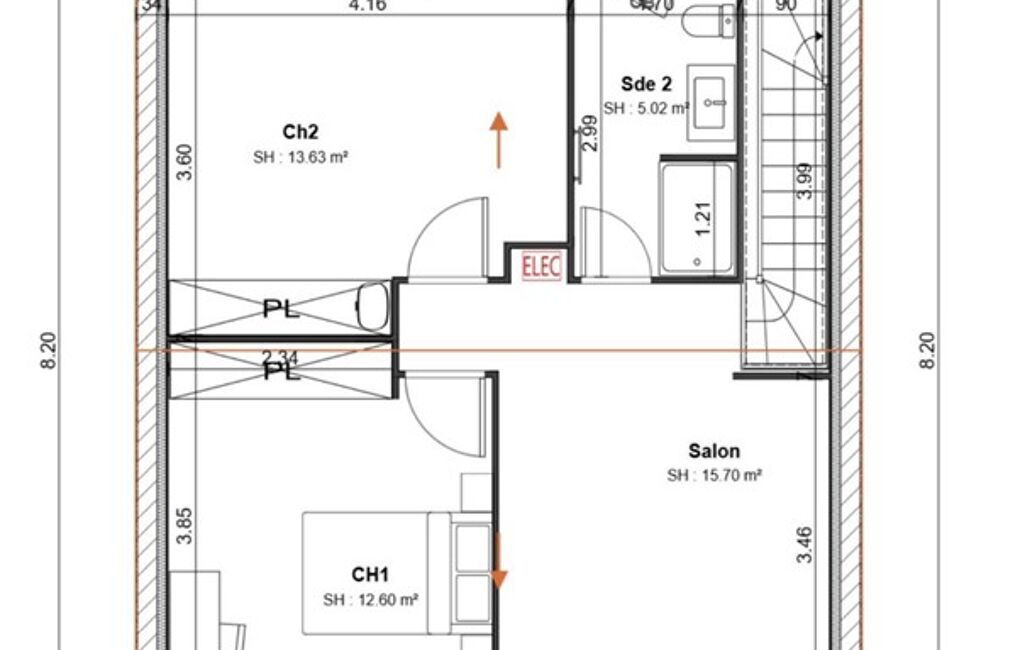 Projet de surélévation comprenant la création de 3 chambres, SDE, WC.