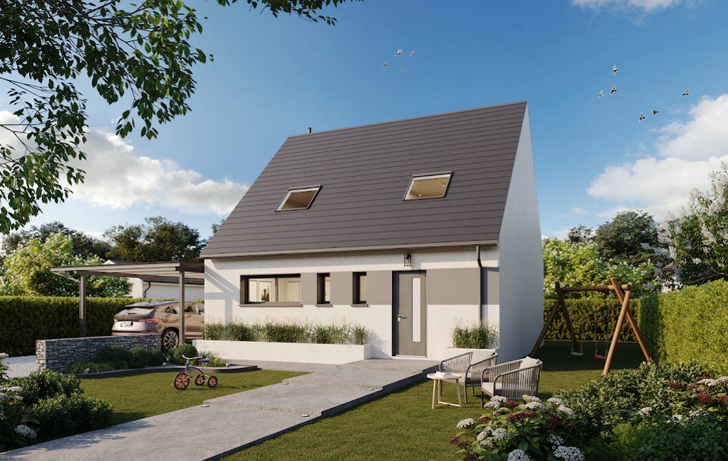 Votre projet de construction sur un terrain de 400 ou 600 m2. pièce de vie avec cuisine ouverte, une suite parentale avec dressing + 2 ch, SDB, Buanderie, etc. - Norme RE 2020 (pompe à chaleur) - Volets roulants ,CDI Obligatoire,