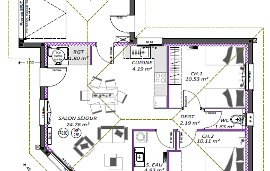 Ce projet vous est proposé « tout compris » hors peintures et cuisine.