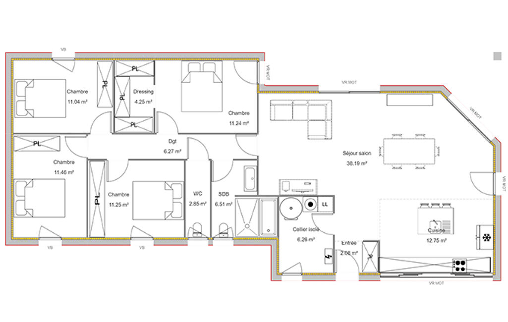 - Surface habitable : 124 m²