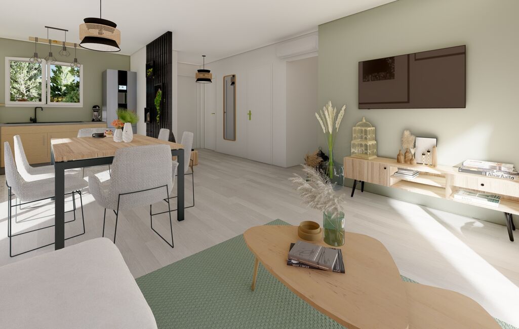 - Une pièce de vie lumineuse avec cuisine ouverte ;