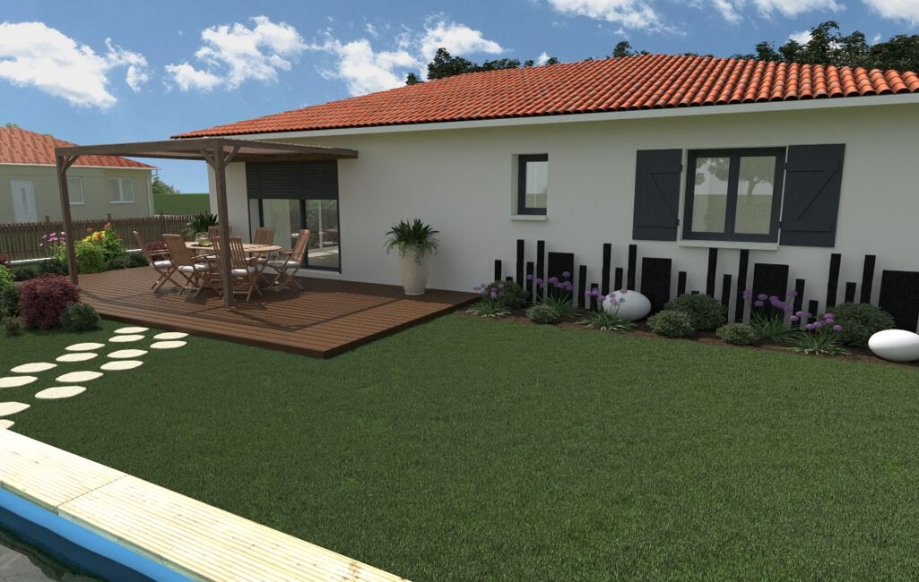 Maisons d’en France Sud-Ouest vous propose d’y construire cette maison neuve ultra lumineuse de 85m². Optimisée et fonctionnelle, elle se compose d’une pièce de vie de près de 42m² avec cuisine ouverte. Cette pièce de vie profite d’une triple exposition à la lumière naturelle.
