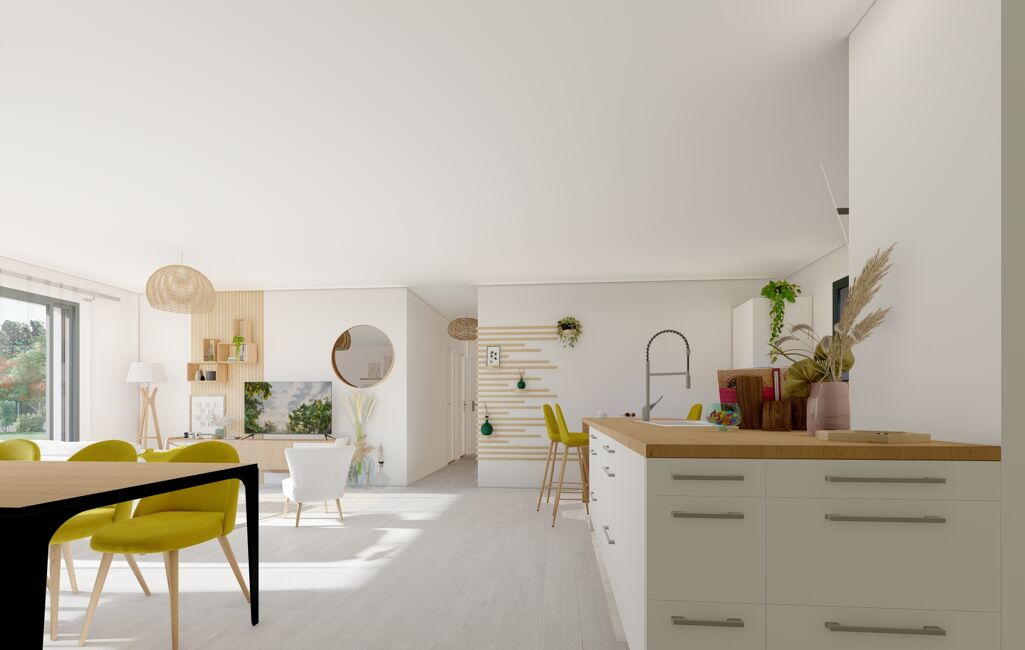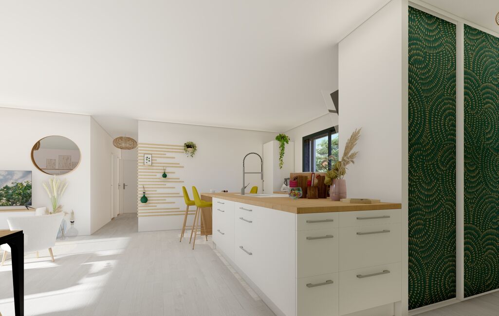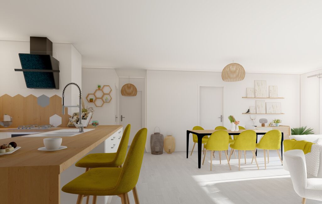 Notre maison modulable de 128 m² habitable avec un garage attenant de 25 m² est composée de trois belles chambres avec placard, d’un bureau et d’une suite parentale.