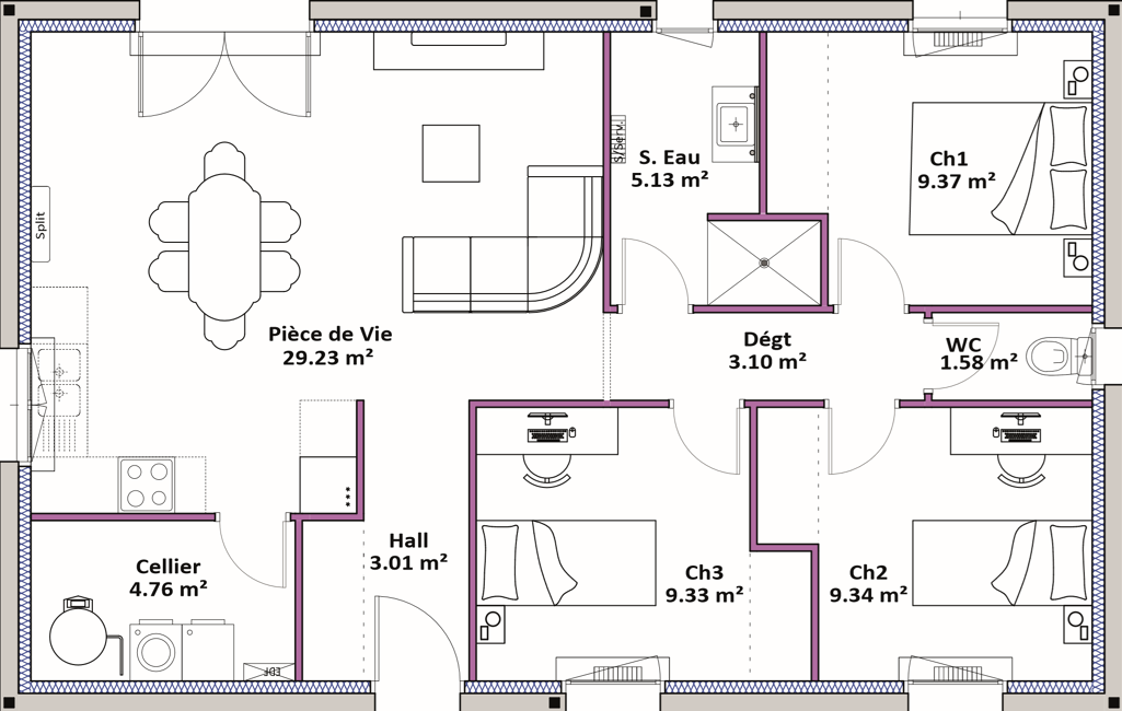 • Surface habitable : 75 m²