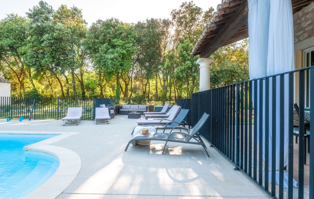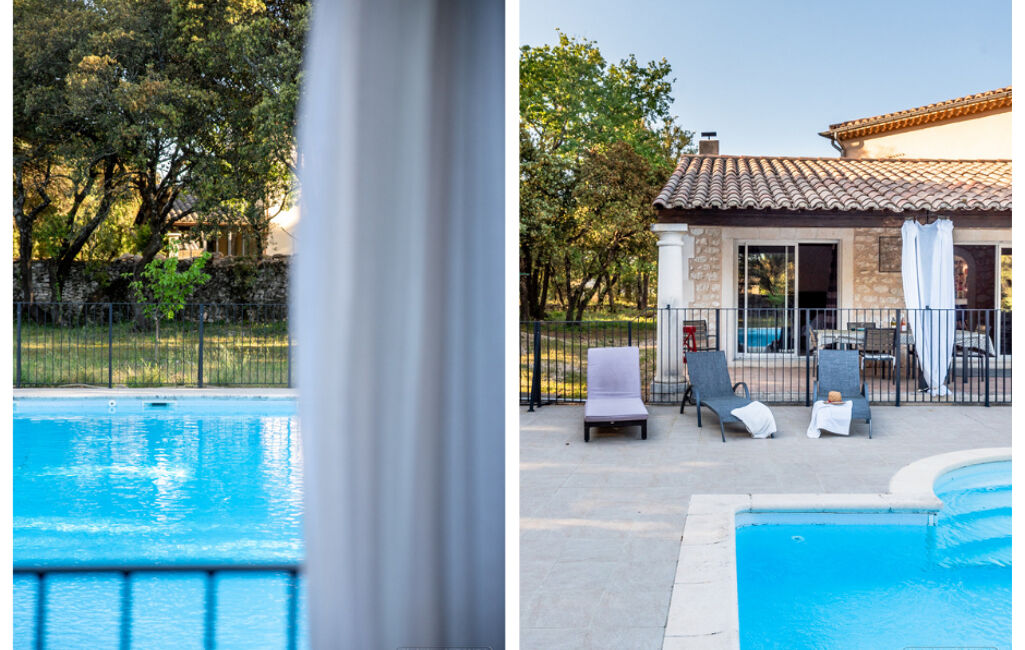 À l'extérieur, vous profiterez d'une grande terrasse couverte, d'un jardin agréable et d'une piscine sécurisée par barrière, pour des moments de détente en toute sérénité.