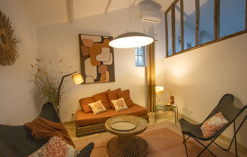 Le bâti d'environ 780 m² comprend une maison principale avec un vaste salon- séjour, une cuisine équipée et 5 suites. Une autre partie propose 2 chambres, une salle de bains, un salon avec mezzanine ouvrant sur une terrasse et une cuisine d'été entièrement équipée. Un studio indépendant complète l'ensemble.