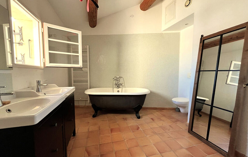 Au premier niveau, une grande salle de bain avec sa baignoire sur pied de plus de 10m² , bénéficiant d'une vue sur le Mont Ventoux.