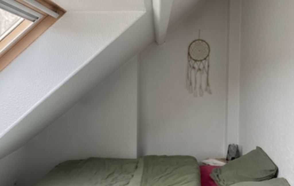 L'entrée mène à une pièce de vie lumineuse de 22 m², combinant un salon accueillant et une cuisine ouverte. Le sol est revêtu d'un élégant parquet dans l'espace salon et d'un carrelage moderne dans la cuisine, créant une atmosphère chaleureuse et facile d'entretien. La cuisine est entièrement équipée pour votre confort, incluant une plaque de cuisson, un réfrigérateur et un lave-linge, vous permettant d'emménager sans contrainte.