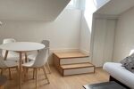 L'appartement se compose d'une grande pièce de vie optimisée, intégrant harmonieusement un coin cuisine entièrement équipé, un espace repas convivial et un coin salon doté d'un canapé convertible avec un matelas de qualité, adapté à un usage quotidien. Une télévision murale est également installée, complétant l'aménagement moderne et fonctionnel. La cuisine est pensée pour faciliter le quotidien, avec des rangements astucieux et les équipements nécessaires pour préparer vos repas en toute simplicité. Un lave-linge est également inclus, offrant un confort supplémentaire.