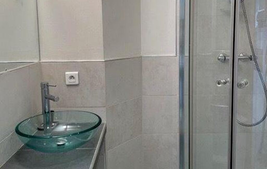 La salle de douches, moderne et fonctionnelle, est pourvue d'un toilette et de rangements pratiques. L'ensemble de l'appartement bénéficie de nombreux rangements intégrés, permettant une organisation optimale de l'espace et un environnement épuré.