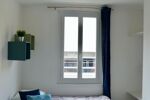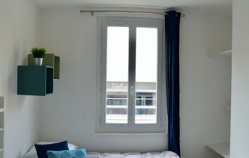 * **Chambre :** Elle est équipée d'un lit banquette de 90x200 cm, fourni avec une couette et une taie, offrant un couchage confortable et modulable. Un bureau est à disposition, idéal pour les études ou le télétravail, ainsi qu'un dressing spacieux pour le rangement de vos effets personnels. Un radiateur à inertie assure un chauffage efficace et homogène.