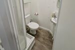 Disposition: pièce de vie avec grande fenêtre donnant sur la rue, coin cuisine, salle d'eau avec douche et vrais WC; buanderie avec machine à laver, sèche-linge, aspirateur, balais et produits d'entretien.