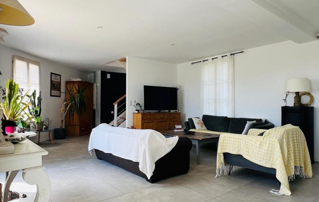 La maison se compose en rez-de-chaussée d'une très belle pièce à vivre lumineuse, avec une cuisine aménagée et équipée ouverte sur le jardin. Cet espace convivial est parfait pour profiter de moments en famille ou entre amis.