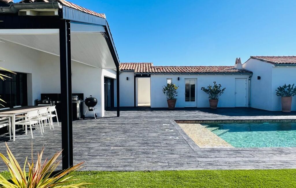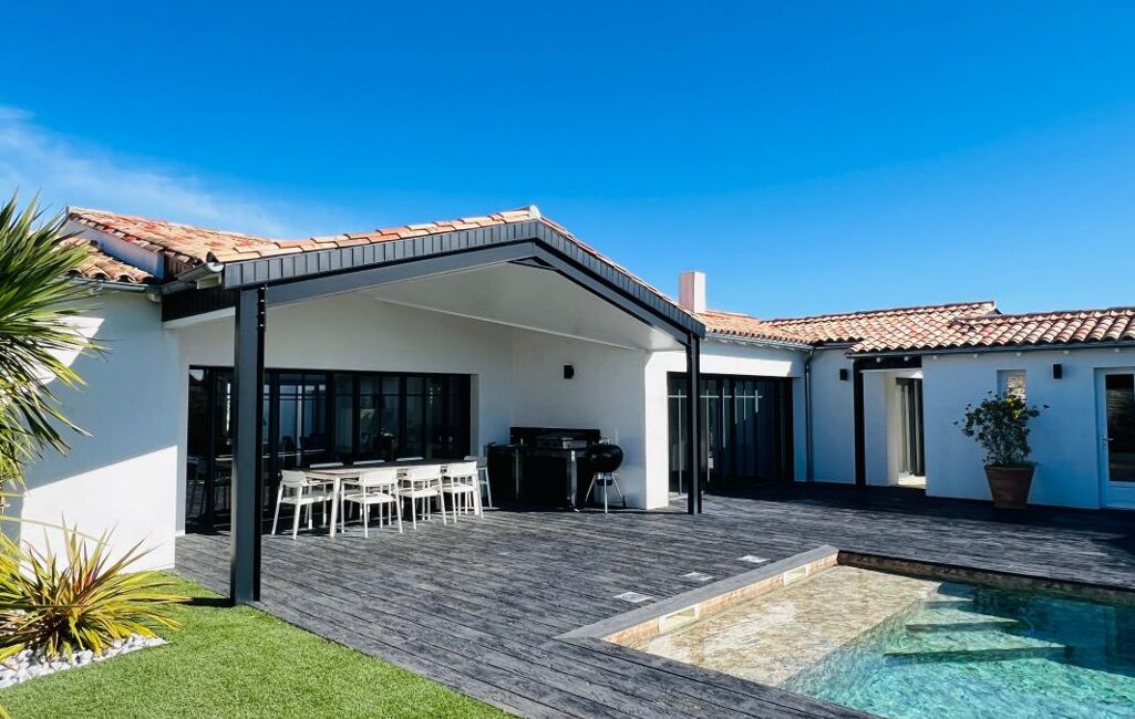 Découvrez cette propriété d'exception à Sainte-Marie-de-Ré, offrant une superficie habitable de 300 m². Avec ses 5 chambres, bureau et cinq patios, elle est entièrement climatisée et sans vis-à-vis.