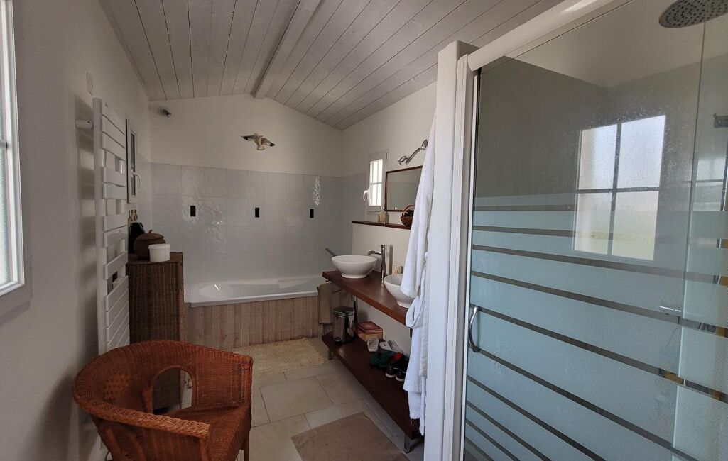 Placée entre les vignes et le cœur du village du Bois Plage, cette maison récente, soigneusement agencée, offre un cadre de vie agréable et fonctionnel.