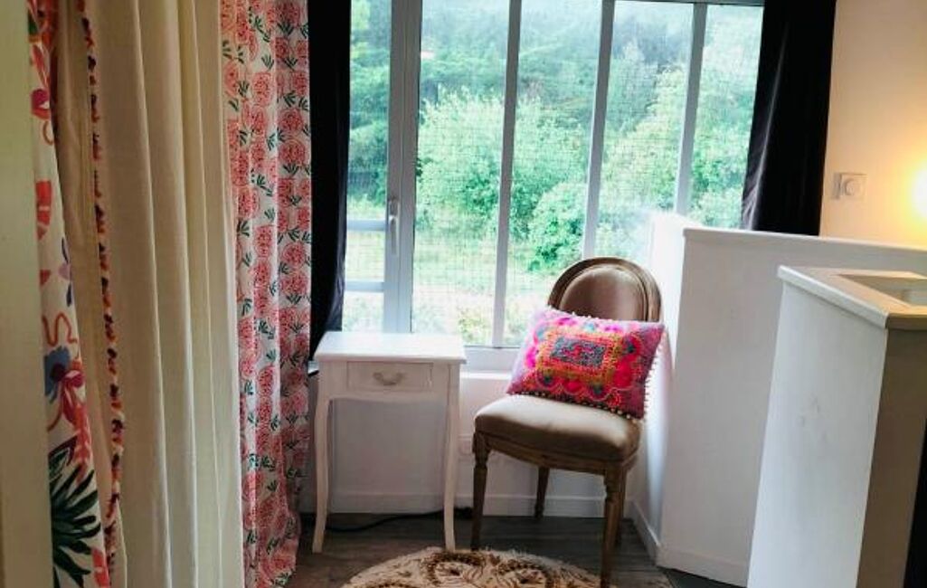 A l'étage une chambre avec salle d'eau/wc et un palier permettant l'aménagement d'un bureau ou un couchage d'appoint.