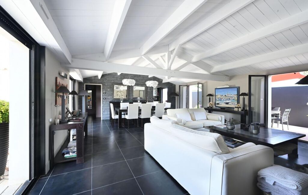 Idéalement située au calme, face à la plage, cette belle maison offre un cadre de vie exceptionnel. Elle se compose d'une entrée, d'un grand séjour lumineux de 53m² avec cheminée et d'une cuisine aménagée et équipée, ouvrant sur un bel espace extérieur agrémenté d'une végétation soignée et d'une piscine.