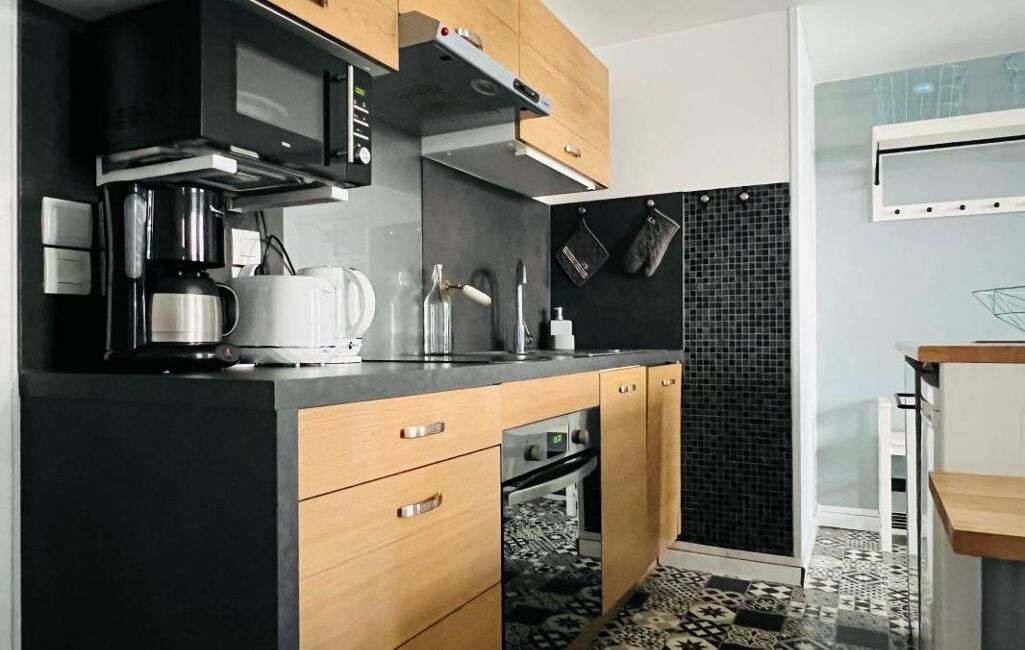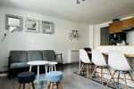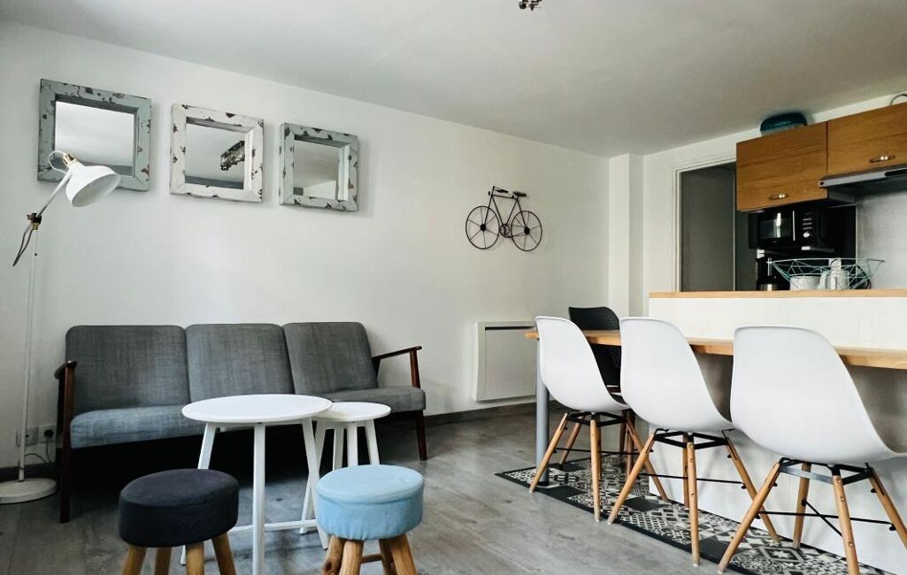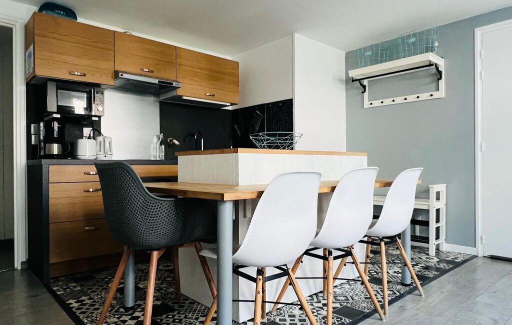Composé de 2 petites chambres, belle pièce de vie avec cuisine aménagée et totalement équipée. Très fonctionnel !