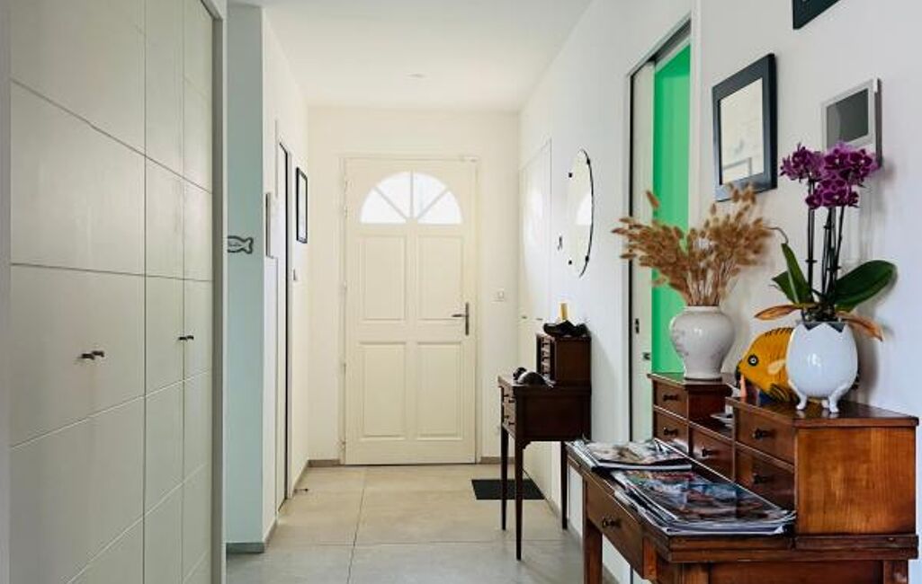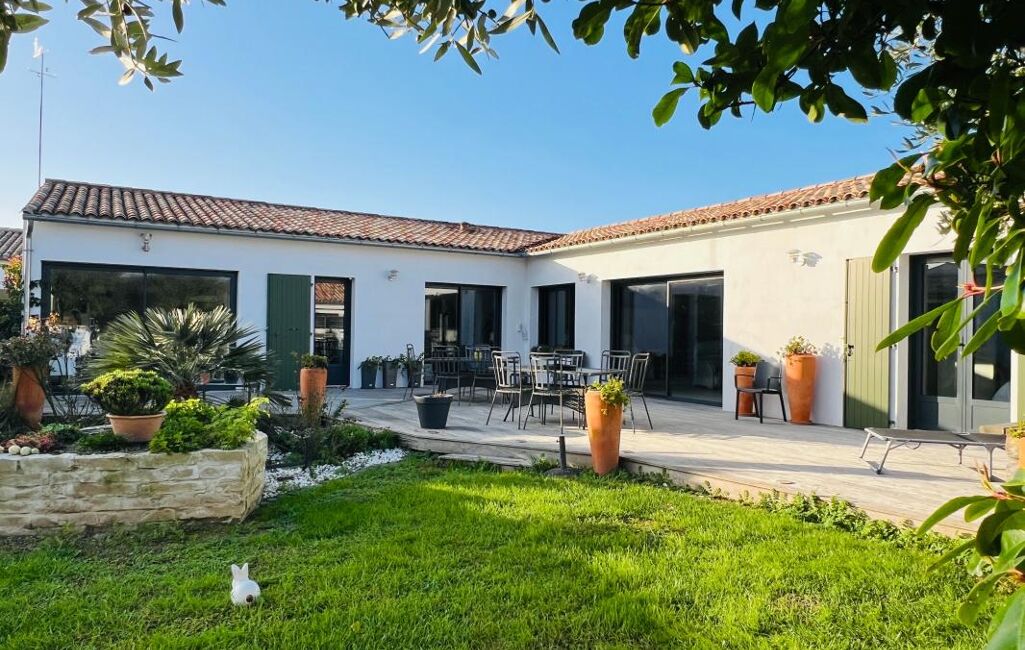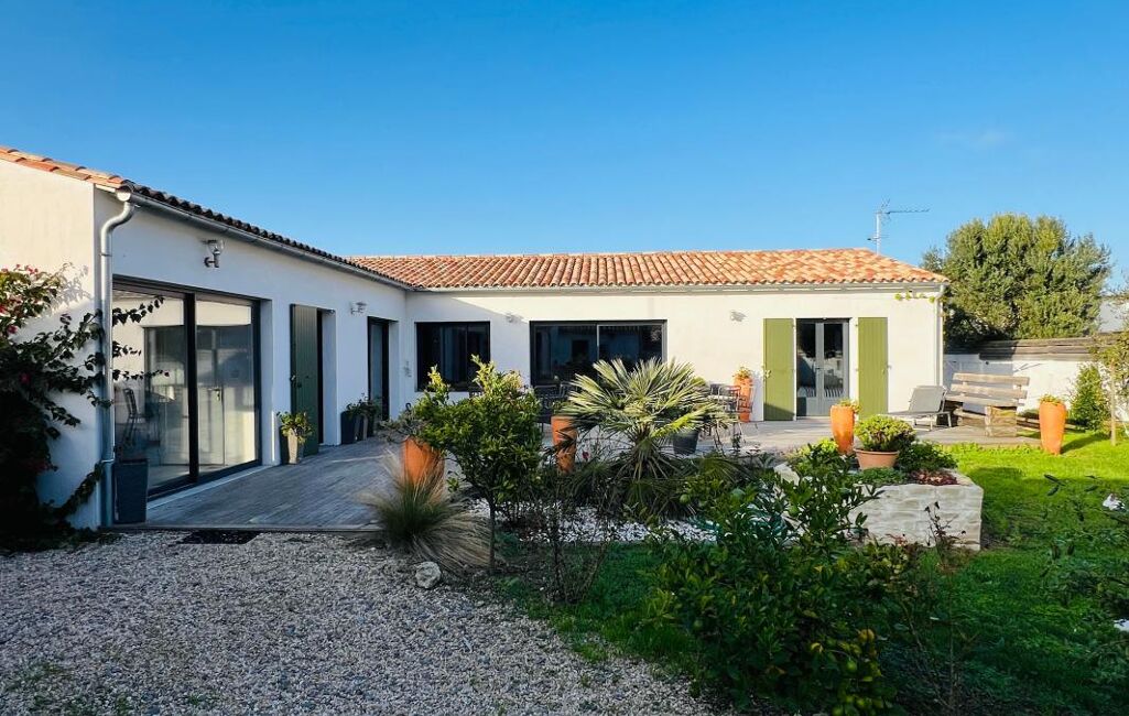 Vous aimerez cette maison lumineuse de plain pied (2019) au calme, sans vis à vis et vous serez à 5 mn à vélo du port et du marché. Elle est composée d'une grande pièce de vie, une cuisine aménagée et équipée, 3 chambres soit 2 avec une salle d'eau et une suite parentale avec une salle d'eau/wc et un dressing. Puis pour votre confort vous disposez d'un cellier, une lingerie, une grande arrière-cuisine et deux garages, le tout sur une parcelle de 600m² environ ou la vie s'organise autour de son jardin arboré. Possibilité de créer facilement en rez-de-chaussée 1 à 2 chambres supplémentaires, une salle d'eau et un étage (Zone UB).