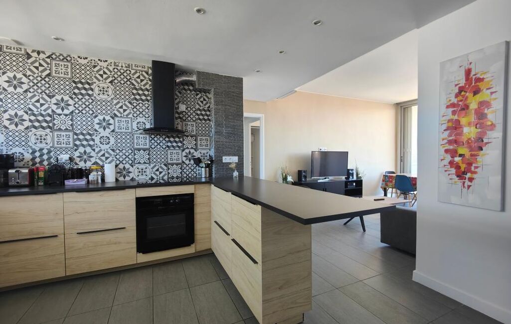 L'appartement s'ouvre sur un séjour lumineux qui se prolonge par un balcon offrant une vue dégagée.
