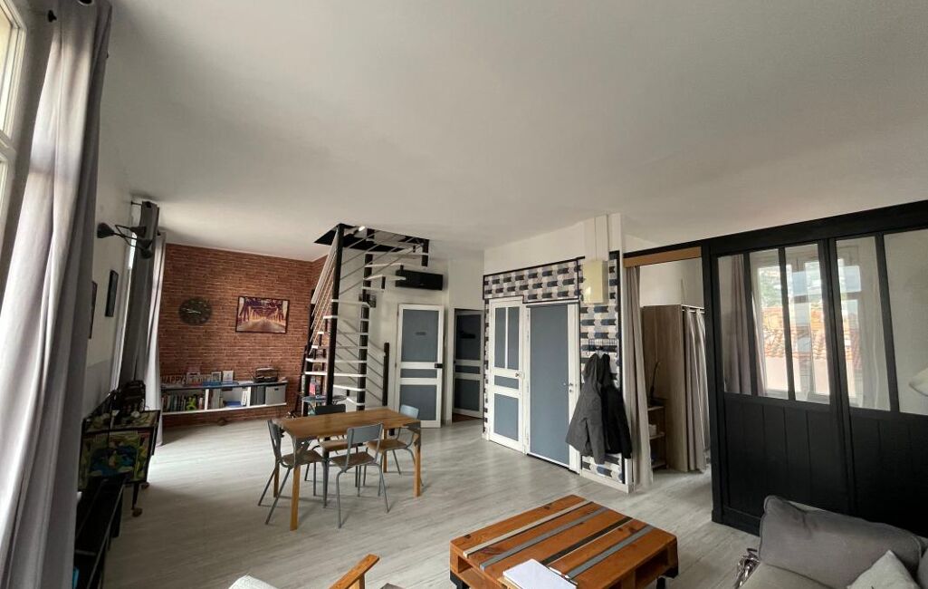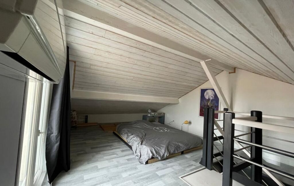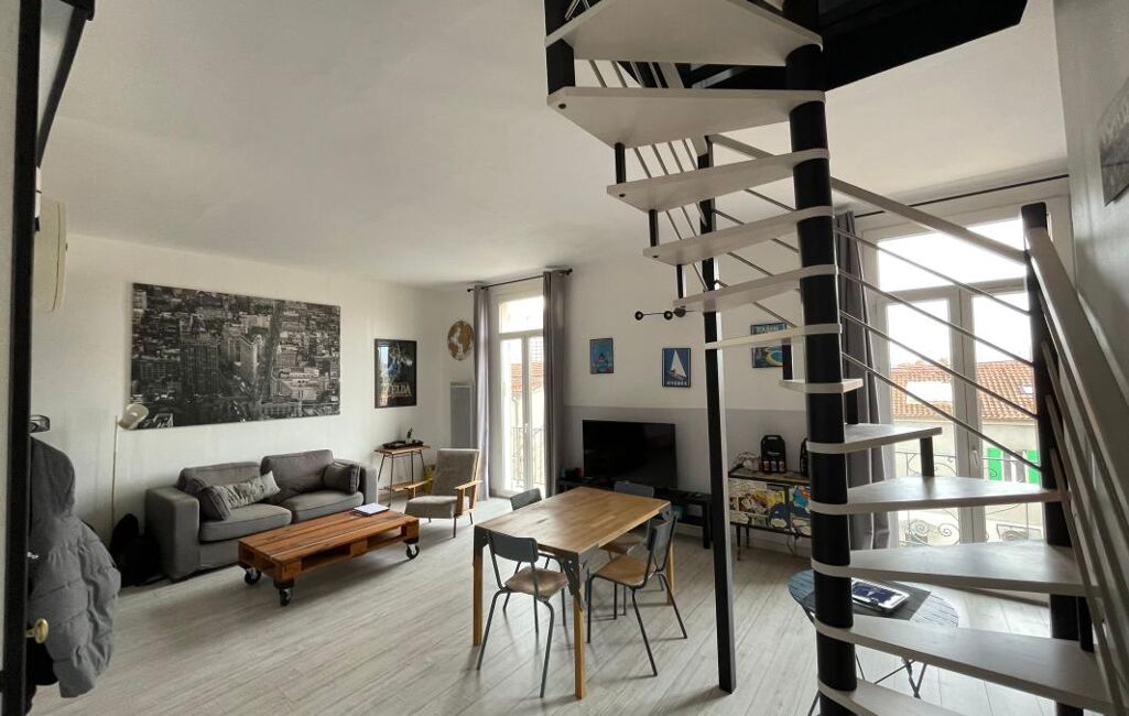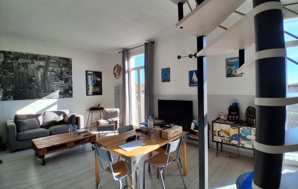 Exclusivité ! Toulon nord, La Loubière, duplex en parfait état avec une déco au goût du jour, traversant, très lumineux formant les 2ème et 3ème étage d'une maison de ville 1920. Au premier niveau, cuisine équipée, double séjour de 34,60 m² avec balcons, une chambre, une salle d'eau, WC séparés et un cellier. A l'étage, combles aménagés pour partie en chambre de 19,25 m² au sol (5.80 carrez) ouvrant sur balcon avec une vue panoramique sur les toits de Toulon + l'autre partie de 33,10 m² à l'état de grenier (avec possibilité d'aménager). Chauffage individuel, climatisation, charges 80 € par mois. Quartier prisé pour ses commodités et écoles à pied et sa proximité avec l'hôpital des armées, la gare SNCF, le centre ville et les facultés.