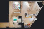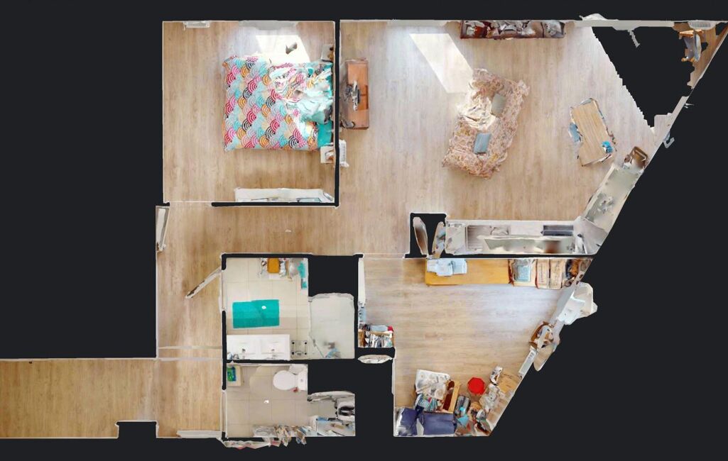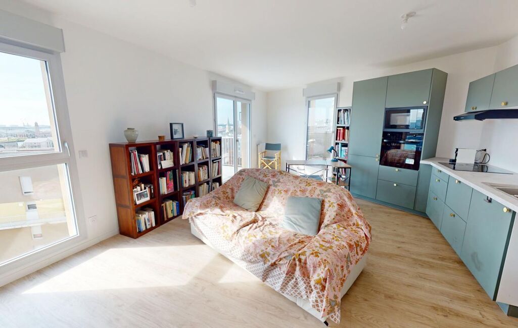 Composé d'une séjour-salon avec cuisine ouverte, deux chambres, une salle de douche et un WC individuel, vous profiterez d'une vue panoramique sur Le Havre depuis la terrasse et de balcon accessibles depuis les pièces principales.