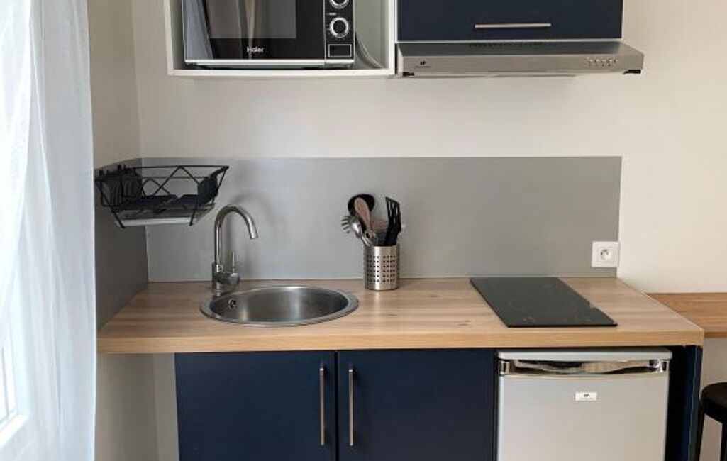 PALAIS DE JUSTICE, 83 rue Jules Siegfried, studio meublé (ch 202) au 2ème étage entièrement équipé comprenant une entrée, une pièce de vie avec coin cuisine et une salle de douches avec wc.