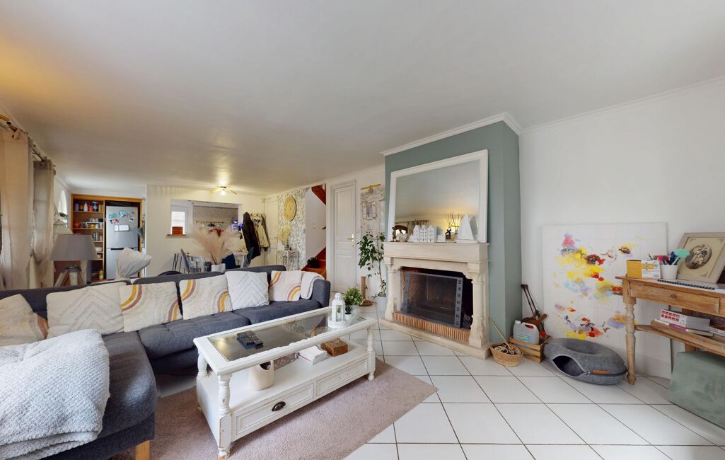 Au rez-de-chaussée, vous découvrirez une pièce de vie chaleureuse, idéale pour recevoir, ainsi qu’une cuisine fonctionnelle au style intemporel.