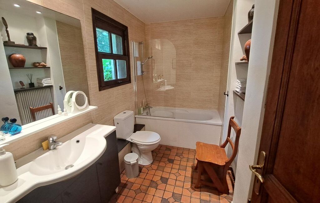 Une lingerie, un vestiaire, et une salle de bains avec WC.