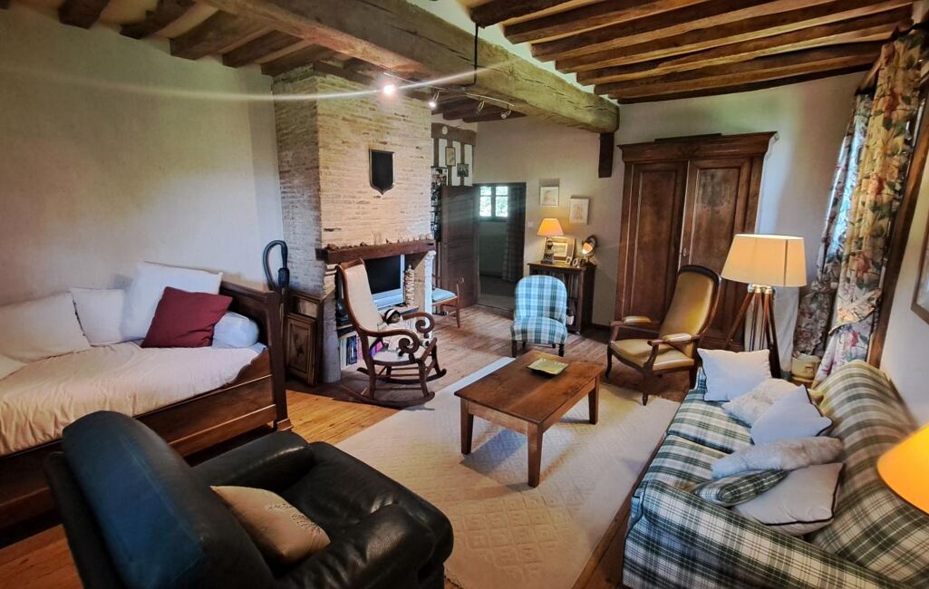 Un vaste séjour avec cheminée insert pour une ambiance chaleureuse.