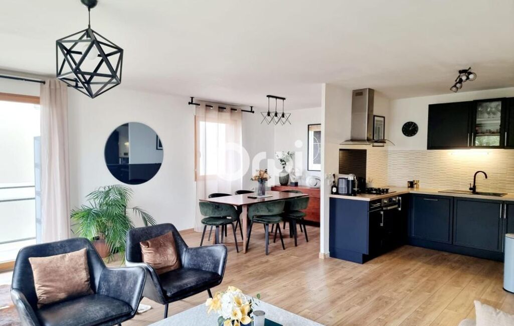 Magnifique pièce de vie de 40 m² intégrant une cuisine aménagée et équipée, exposition Sud/Est ouvrant sur un balcon;